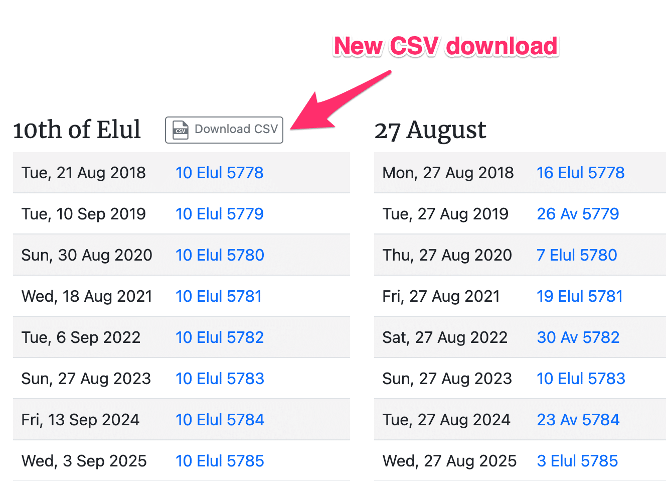 We added CSV download support for Shabbat Candle-lighting times (year-at-a-glance / “Refrigerator times”).