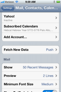 If you successfully downloaded a Yahrzeit calendar from Hebcal.com to your iPhone, then any Yahrzeit or Anniversary reminders are now part of your regular calendar (often called “Home” or “Calendar”) and there is no need to make any changes to your Settings.